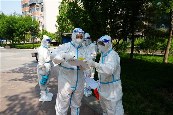 近幾日,北京正式入夏,30多度的高溫下,很多有研志愿者們第一次穿上密不透風的防護服,又悶又熱,幾個小時都不能喝水,汗水浸透了衣服,但他們還堅持不斷對公共場所、重點點位進行消毒消殺,一家一戶為居民清理生活垃圾,協(xié)助為居民登記購藥信息,耐心地一一解答居民的疑問,安撫大家的情緒。“請伸出雙手,我為您消毒。”“請您戴好口罩,這是對我們健康的保障。”“我們穿上這身防護服,就有責任要把每項防控措施認真做好、落實到位,大家齊心合力,相信很快就會戰(zhàn)勝疫情。”在有研志愿者中聽到了很多這樣動人的聲音。
