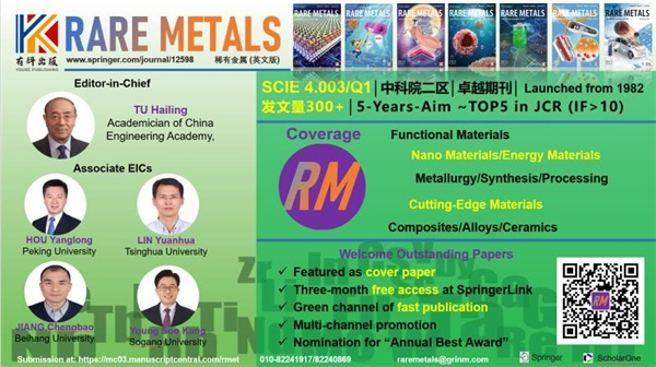 《稀有金屬(英文版)》的發(fā)展,是自我革新的需要。為了滿足新時(shí)代對(duì)科技文化的需求,《稀有金屬(英文版)》始終堅(jiān)持創(chuàng)新、銳意進(jìn)取、不斷革新。在期刊內(nèi)容方面,期刊不再拘泥于傳統(tǒng)冶金領(lǐng)域,兼容并蓄,將面向未來的能源材料、二維材料、催化材料納入期刊范疇,做到新與舊的平衡,做到創(chuàng)新和傳統(tǒng)的有機(jī)結(jié)合。在提高質(zhì)量方面,期刊邀請(qǐng)了一批具有國(guó)際化視野的專家進(jìn)行層層把關(guān),嚴(yán)格篩選,優(yōu)中選優(yōu),使期刊論文質(zhì)量穩(wěn)步提升。在平臺(tái)建設(shè)方面,期刊重視服務(wù)效果,使用國(guó)際先進(jìn)的投審稿系統(tǒng),同時(shí)打造全方位的融媒體傳播平臺(tái),增強(qiáng)作者和讀者的體驗(yàn)感和科技感。在提升影響力方面,期刊積極宣傳、努力合作,開展相關(guān)學(xué)術(shù)研討會(huì),提高在國(guó)內(nèi)和國(guó)際的影響力。