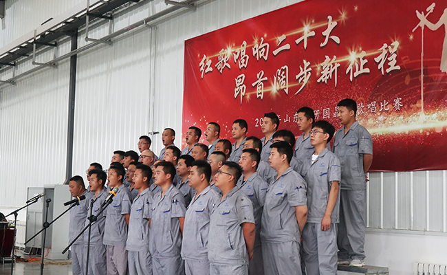一首鏗鏘嘹亮的《愛我中華》正式拉開了比賽的序幕,洪亮的歌聲唱出對祖國的祝福。男生獨(dú)唱《萬疆》、合唱《強(qiáng)軍戰(zhàn)歌》、合唱《歌唱祖國》等等,一首首紅歌深深感染著在座的每一位員工,默契十足的合唱,激情豪邁的獨(dú)唱,每一首都在表達(dá)著對偉大祖國、偉大黨的贊美和歌頌。