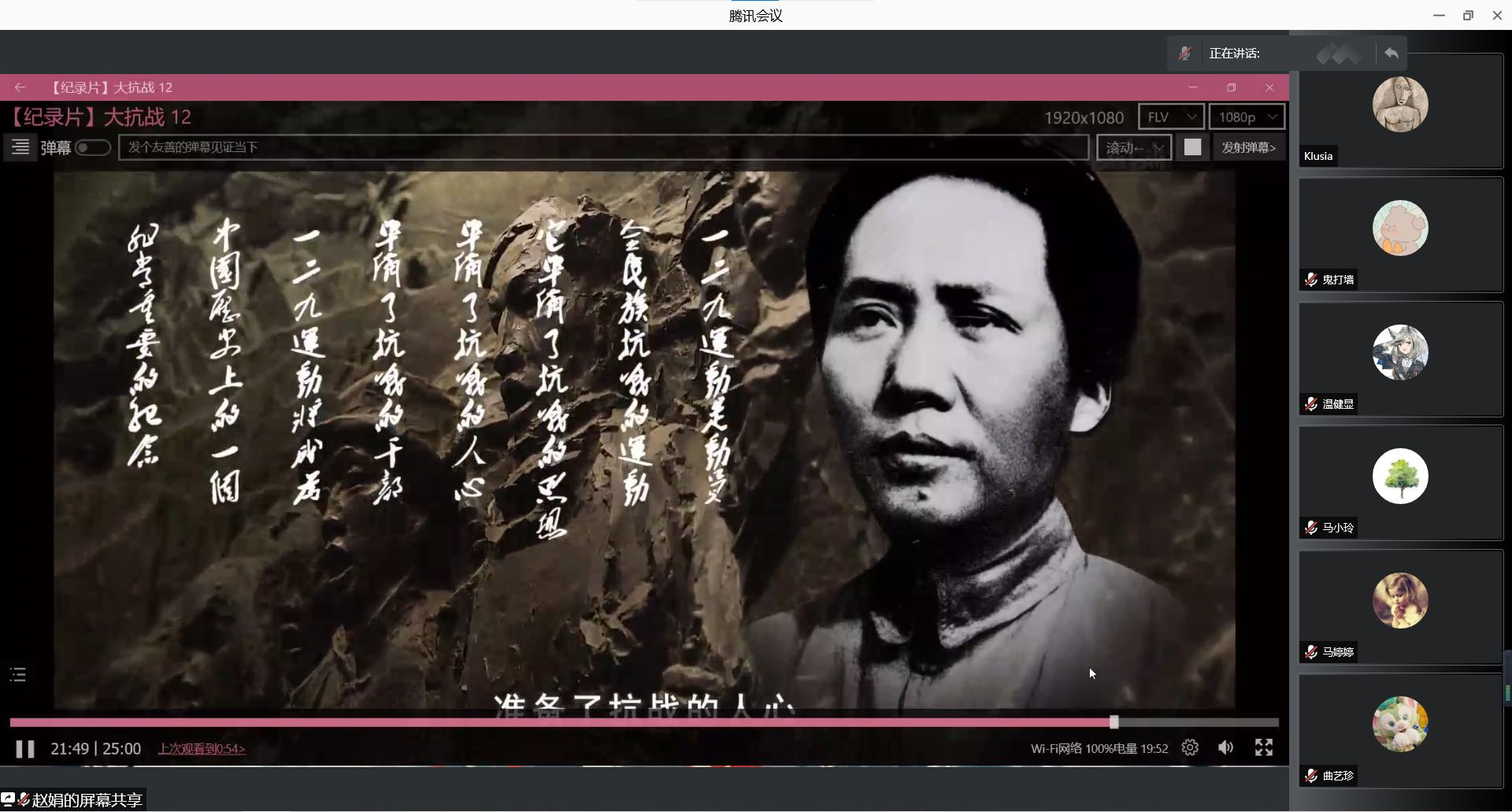 為幫助同學(xué)們詳細(xì)了解“一二·九運動”歷史,團支部首先組織觀看了紀(jì)錄片《大抗戰(zhàn)》第十二集(一二·九運動),主要講述了“九一八”事變之后,日本帝國主義加緊侵略中國,在東北地區(qū)推行殖民地化統(tǒng)治的同時,利用南京國民政府奉行的不抵抗政策,將侵略矛頭指向了華北地區(qū),民族危機空前嚴(yán)重。1935年12月9日,北平數(shù)千名學(xué)生舉行了抗日救國示威游行,以反對華北自治、反抗日本帝國主義為口號,要求保全中國領(lǐng)土的完整,掀起了全國抗日運動新高潮。
