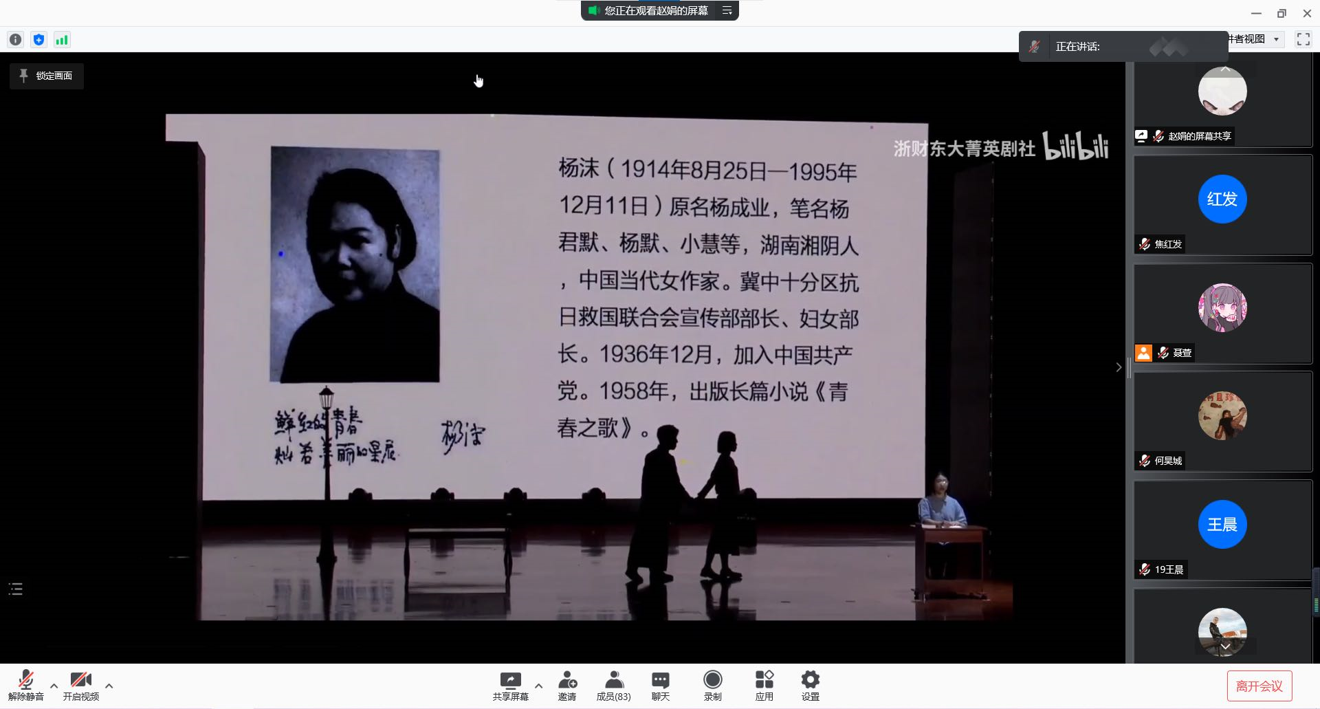 隨后,為深入體會當(dāng)時進(jìn)步青年的愛國精神,團支部組織觀看了話劇《青春之歌》?!肚啻褐琛犯木幾詶钅L篇小說,以楊沫親歷的生活為原型,講述了林道靜、余永澤、盧嘉川等一批具有鮮明時代特征的知識青年在特殊的歷史時刻,各自不同的人生選擇,生動形象地展現(xiàn)了民族危亡時期革命知識分子的成長史。