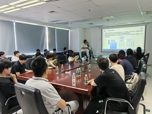事業(yè)部首先對公司的研發(fā)領(lǐng)域及取得的重要成果進(jìn)行了介紹,并系統(tǒng)講解了固態(tài)儲氫技術(shù)的原理,及其面向新能源汽車、分布式能源站等場景的應(yīng)用潛力和當(dāng)前產(chǎn)業(yè)化面臨的挑戰(zhàn)。隨后,開展電解水制氫技術(shù)的專題講解,詳細(xì)介紹了該領(lǐng)域的技術(shù)路線、關(guān)鍵材料系統(tǒng)效率以及成本構(gòu)成。最后,組織同學(xué)們參觀了測試裝置實(shí)驗(yàn)室和制氫實(shí)驗(yàn)室,詳細(xì)講解電解槽測試平臺、制氫系統(tǒng)裝置等各類實(shí)驗(yàn)裝置的作用。