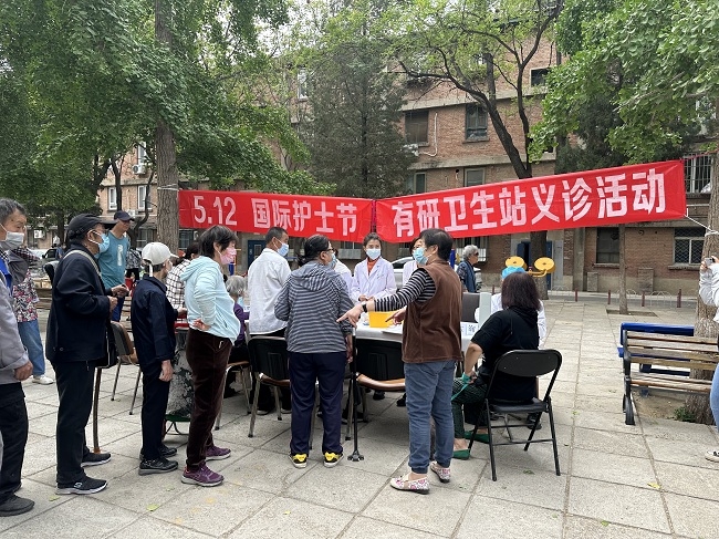 5月12日上午,恰逢有研衛(wèi)生站的醫(yī)護(hù)人員為了迎接護(hù)士節(jié)在新外大街3號(hào)院社區(qū)廣場(chǎng)舉行義診活動(dòng)。沈健一行看望了正在為義診忙碌著的工作人員,隨后看望了衛(wèi)生站的醫(yī)護(hù)人員,向她們送上鮮花,與她們親切交談,感謝她們?cè)谄椒驳膷徫簧夏瞰I(xiàn),守護(hù)社區(qū)居民和集團(tuán)職工的生命安全和身體健康。他寄語(yǔ)有研衛(wèi)生站醫(yī)護(hù)人員繼續(xù)弘揚(yáng)“人民至上、生命至上”理念,繼續(xù)發(fā)揚(yáng)職業(yè)精神和優(yōu)良傳統(tǒng),繼續(xù)堅(jiān)守初心、踐行使命,提高本領(lǐng),更好地滿足人民群眾衛(wèi)生健康需求。