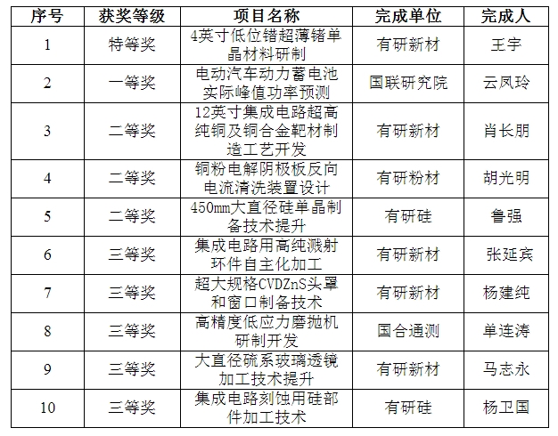 金秋九月,正是收獲的季節(jié),2022年全國機(jī)械冶金建材行業(yè)職工技術(shù)創(chuàng)新成果展示評選結(jié)果揭曉,有研集團(tuán)共有10項職工創(chuàng)新成果獲獎,其中特等獎1項、一等獎1項、二等獎3項、三等獎5項。有研集團(tuán)工會被命名為全國機(jī)械冶金建材行業(yè)職工創(chuàng)新成果展示優(yōu)秀組織單位。