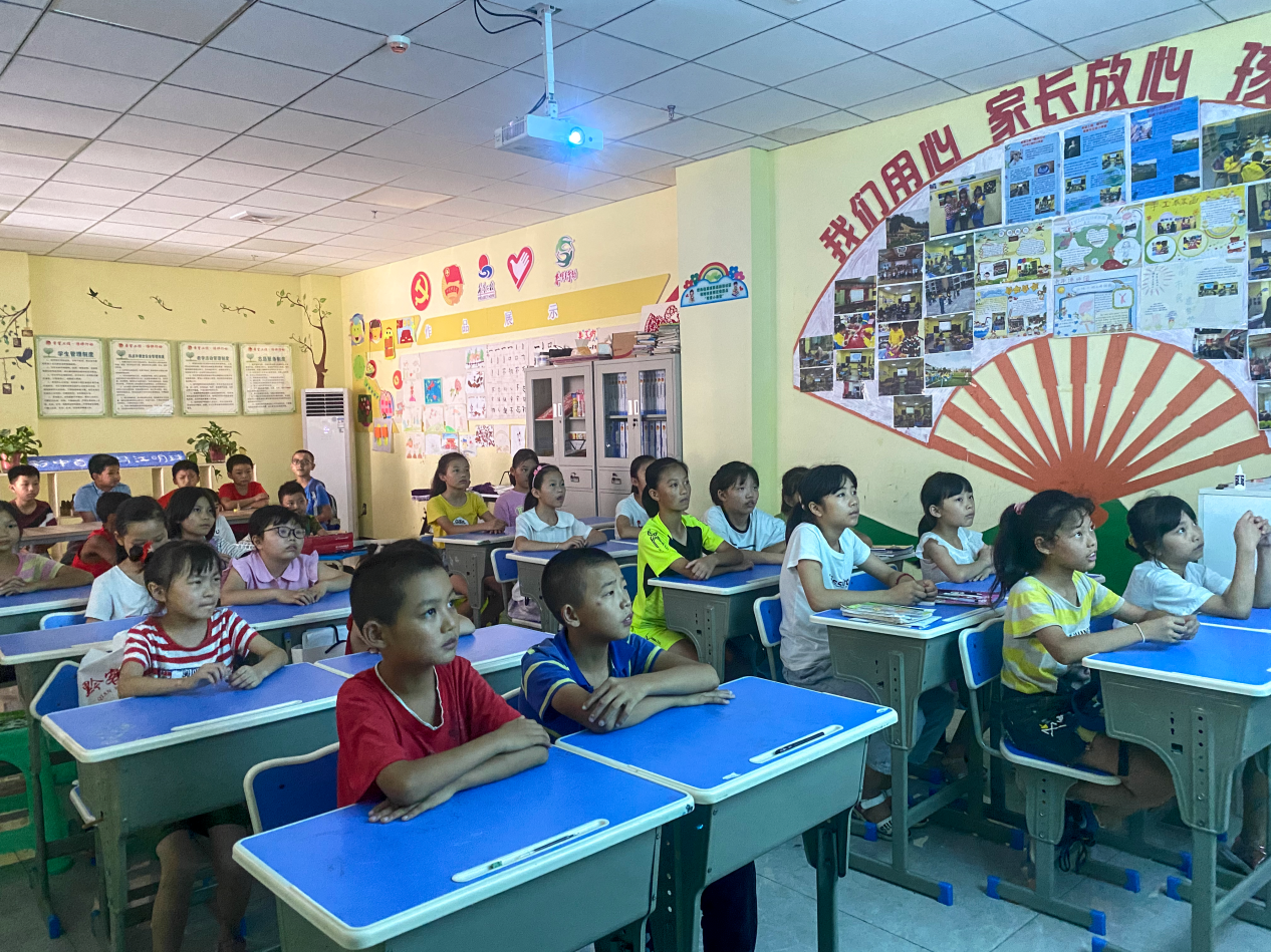 課后,研究生支教團為孩子們播放了電影《我和我的祖國》,電影中七個平凡的故事給孩子們帶去了笑和淚,也讓孩子們對“我”與祖國的關(guān)系有了更感性的認識。