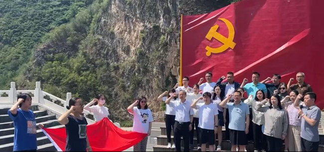 面對象征祖國大地的960平方米巨大黨旗,全體黨員重溫了入黨誓詞。在當年《沒有共產(chǎn)黨就沒有新中國》歌曲誕生的小院,大家現(xiàn)場聆聽了北京榜樣人物、房山區(qū)霞云嶺堂上村原村支書李增軍講述曹火星同志以筆為槍的創(chuàng)作故事。
